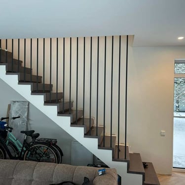 Galime pasiūlyti standartinius, minimalistinio dizaino turėklus arba konstrukcijas su papildomu užpildu – iš metalo lakštų, perforuotų plokščių ar stiklo.